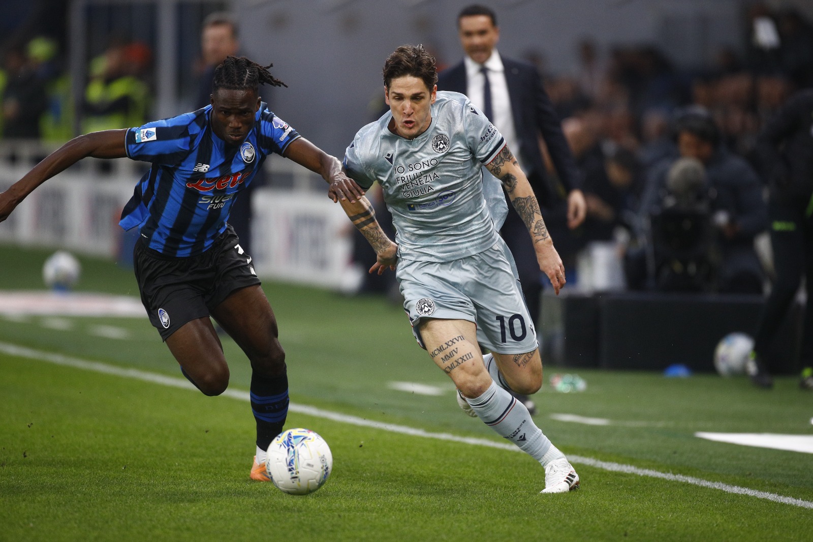 La Dea nel primo tempo va sotto e non dà mai l’idea di avere il brio dei giorni migliori. Rischia subito su un destro a lato di poco di Ehizibue a cui risponde Scamacca. Poi Hien ci prova di testa mentre un tiro-cross di Zaniolo costringe in angolo Carnesecchi e al 39′ la partita si sblocca quando Kossoonou perde il duello aereo con Kristensen. La reazione è tutta in un destro di Samardzic chiuso in angolo e di uno stacco oltre la traversa di Scamacca sugli sviluppi del tiro dalla bandierina. L’ex Sassuolo ad inizio ripresa trova lo spiraglio e il suo destro improvviso sbatte sul palo con Davis che, sul versante opposto (55′) non sbaglia vanificando un doppio salvataggio di Kolasinac. Quindi la mossa già citata che dà il primo esito al 75′: centro perfetto di Zalewski e incornata di Scamacca. Al 79′ Okoye esce male, Pasalic recupera, serve Krstovic il cui destro è respinto dal portiere con Scamacca che, vince il duello ad alta quota con Ehizibue e fa doppietta. Minuto 84 ed Okoye si riscatta quando si fa trovare pronto su una stoccata di Krstovic poi nel finale i friulani sfiorano il nuovo sorpasso con Atta (destro ad una spanna dalla traversa), con Buksa che salta Zappacosta ma non Carnesecchi che lo anticipa in provvidenziale uscita bassa e con Ekkelenkamp sul quale salva tutto Hien.